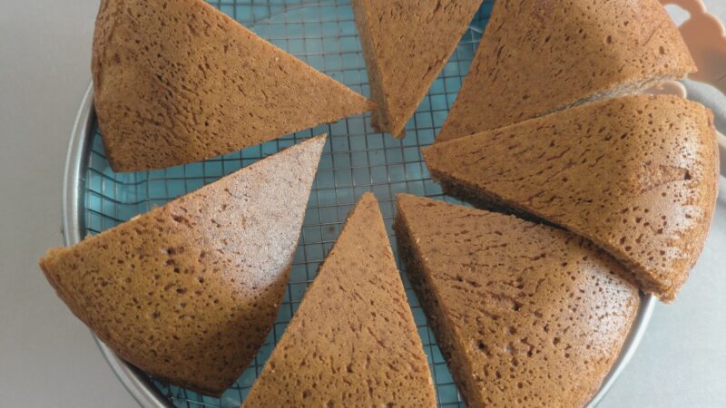 分厚くてまるいホットケーキの完成。これを6等分して、冷蔵庫にストックしてます。