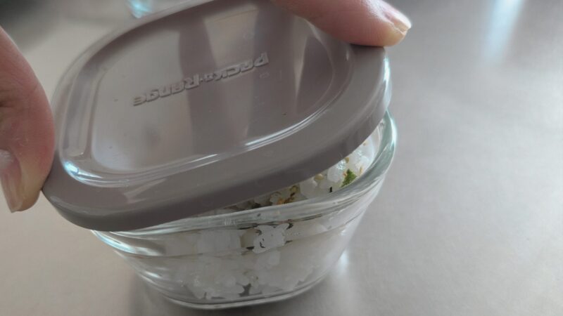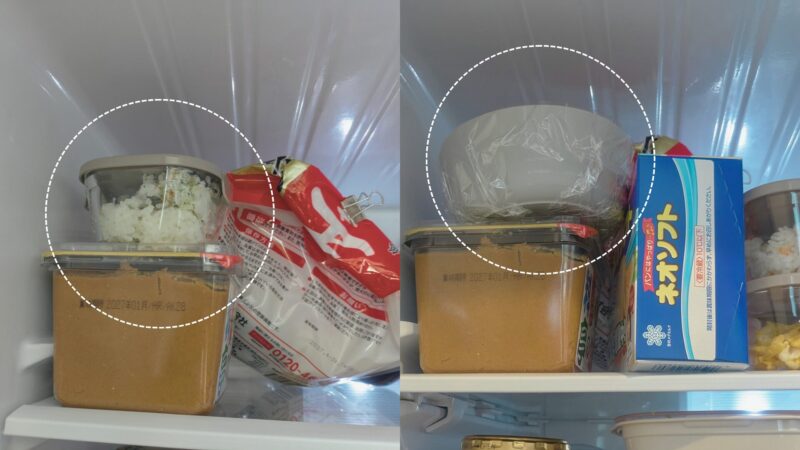iwakiの容器は余ったご飯を冷凍することもできます。容器にご飯を入れてから軽く振ると、ご飯がガラスにくっつきにくくなり便利なようです。しかしわがやでは…冷凍庫内がカオスでガラス容器を入れるのはためらわれる!