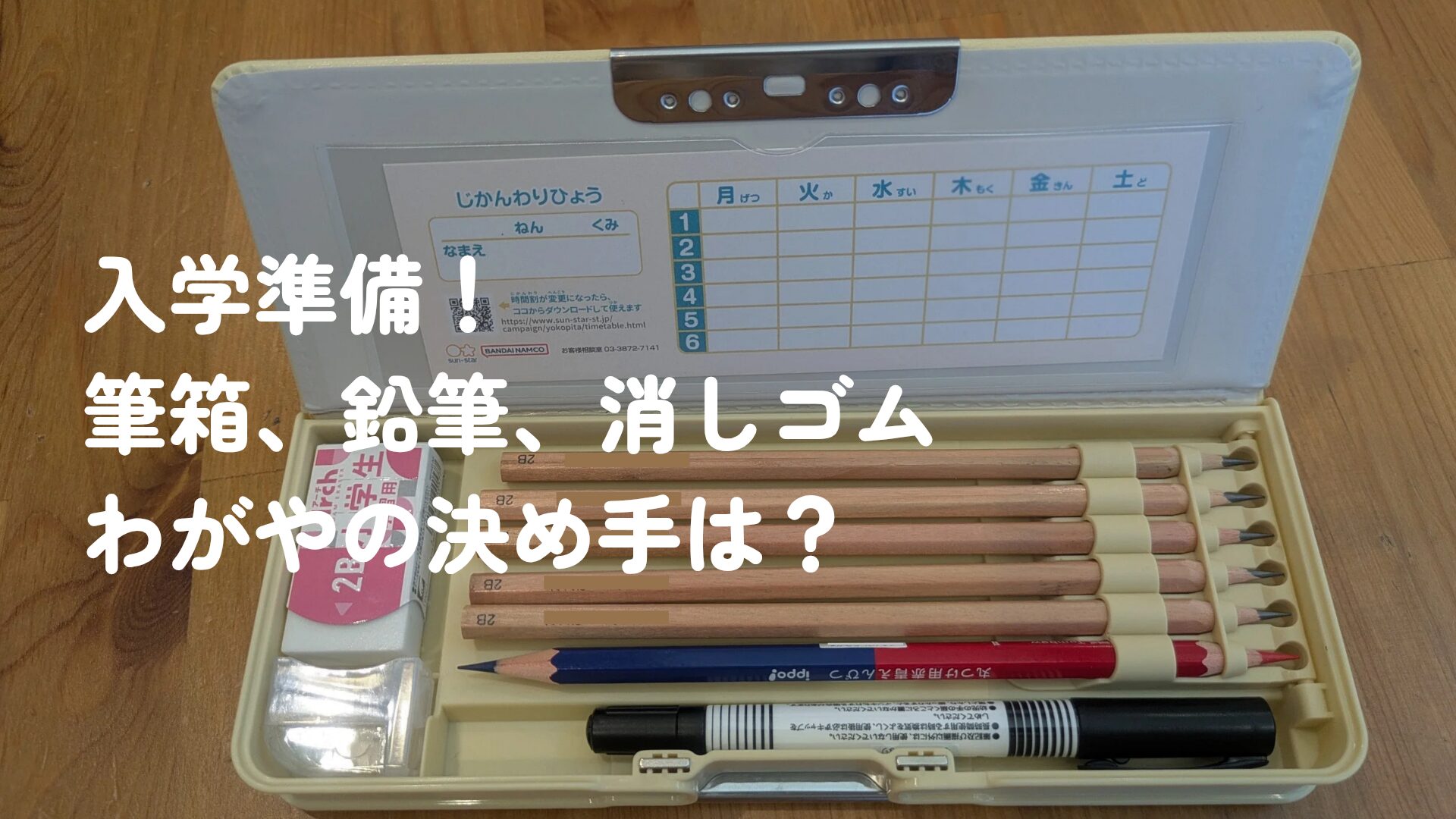 春休みを前に、入学準備品がついに届きました!悩んだ末にわがやで選んだ「筆箱・名入れ鉛筆・消しゴム」。